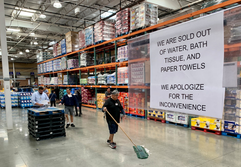 2. Written: The caption for this photo states, on March 2, 2020 a sign is hanging inside Costco. Cypress notified customers about certain products being sold out.